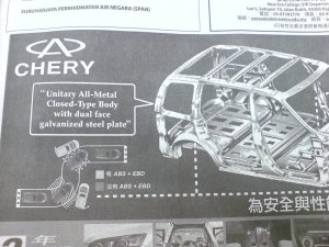 Well few days back, I found this car advertisement on Chinese newspaper. When I glance thru the advertisement, I found something is not right. Then I look carefully with the explanation diagram below I found out that a car with ABS + EBD will slip out from the track when it drive thru water, snow or any terrain. And the car without ABS + EBD stay on track…