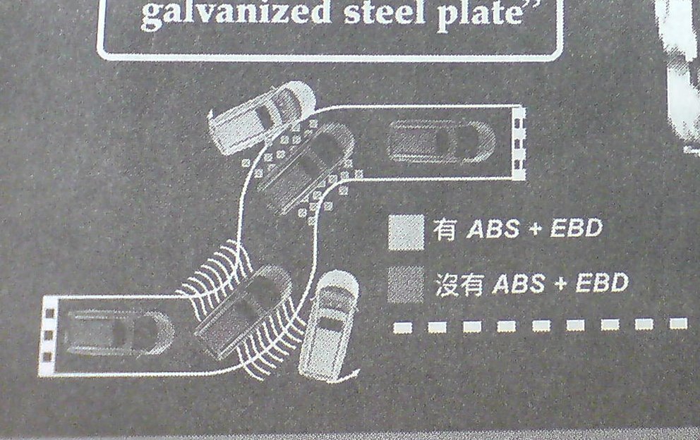 Well few days back, I found this car advertisement on Chinese newspaper. When I glance thru the advertisement, I found something is not right. Then I look carefully with the explanation diagram below I found out that a car with ABS + EBD will slip out from the track when it drive thru water, snow or any terrain. And the car without ABS + EBD stay on track…