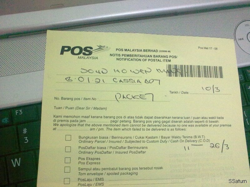 Well recall from when I receive my notification, it is dated 11 March. It took at least 6 days from Malaysia Kastam to POS Malaysia. I wonder why they have to take so long time to deliver to POS Malaysia.