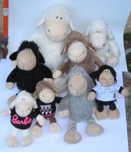 It’s very hard to tell but it looks like a mixed group of real and not real. The ones with t-shirts I think are all fake. The larger dangling sheep up the back look real. You really need to see them for real to know 100% though.