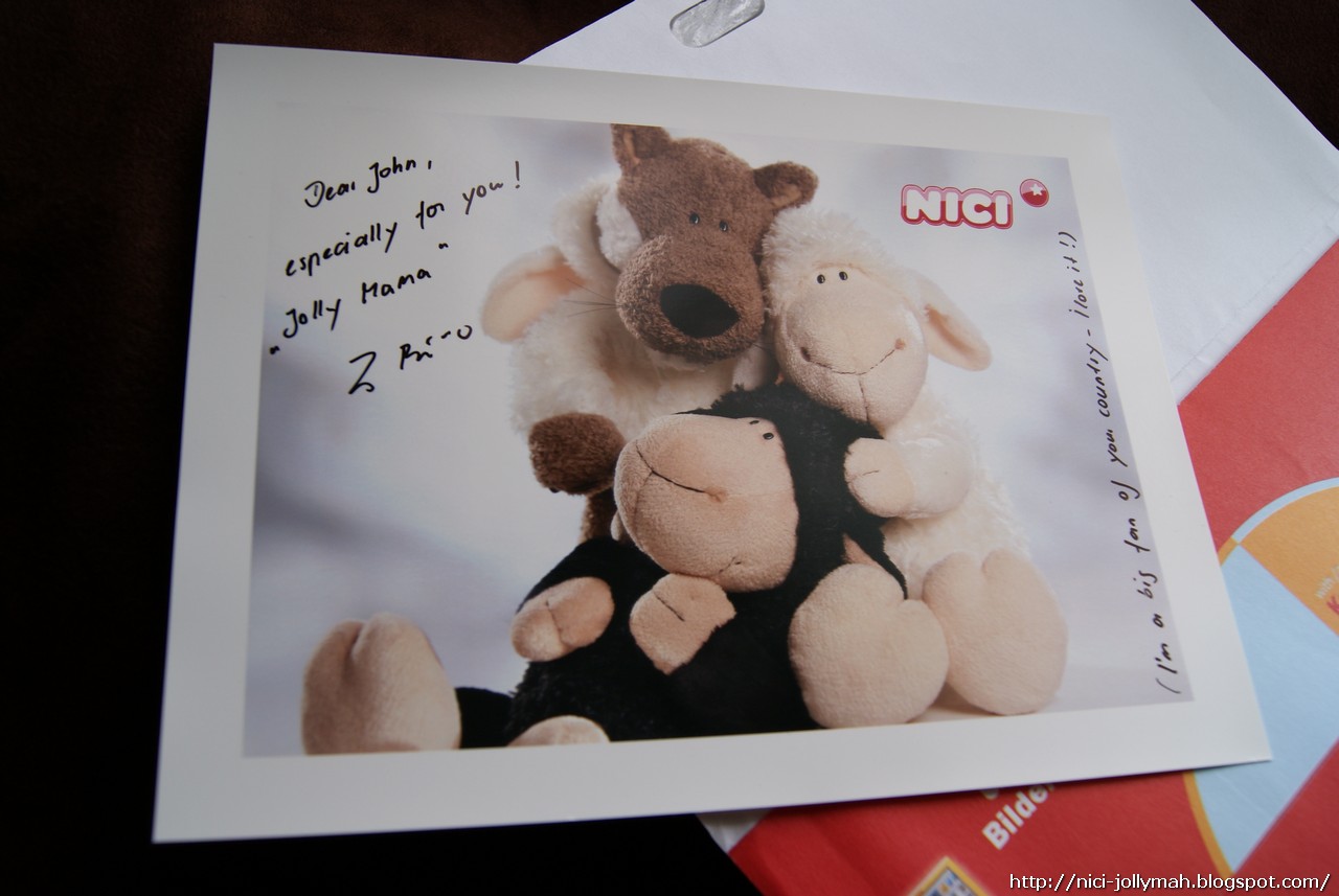 This is a special autograph from Original Jolly Mah Designer (They call it Jolly Mama) :D. I am going to frame this up and hang it up in my living room. I believe Jolly Mama also wish you say Hi to all the NICI fan out there..