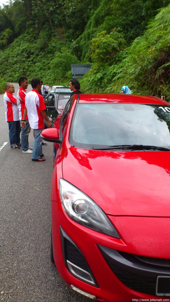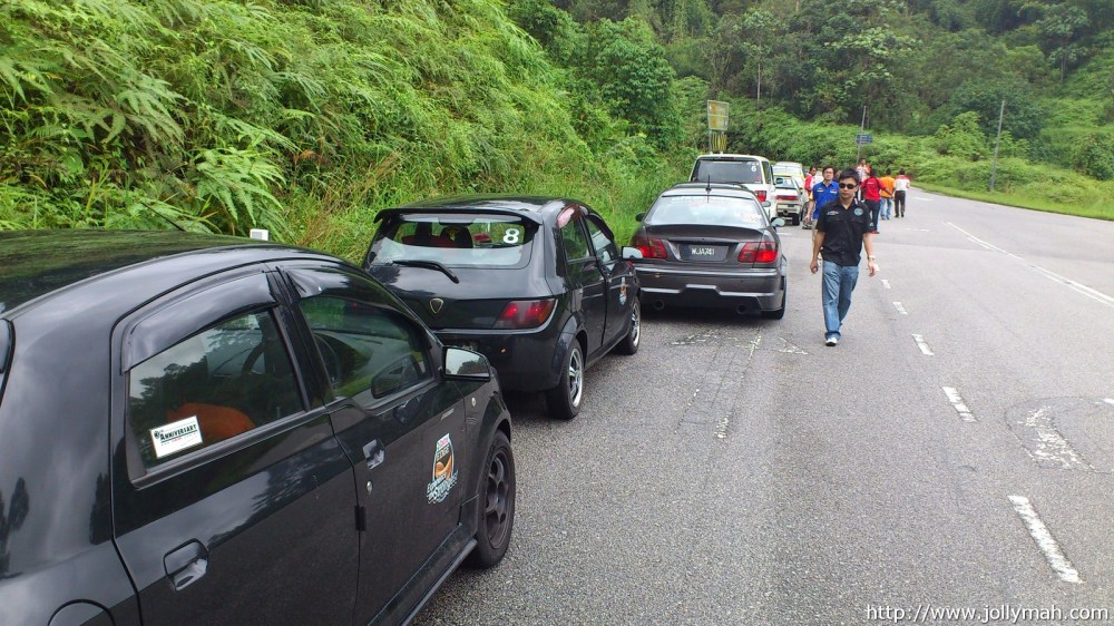 That day is rainy day, we encountered 2 Proton Saga slightly skidded when come to down hill. Luckily no one is injured thanks to the professional driver :).